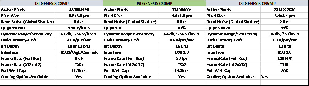 JSI is now offering sCMOS 5 Megapixel, 8 Megapixel, 50 Megapixel and the new 120 Megapixel Cameras the Scientific and Fast imaging industries. Available in a non-cooled or cooled packaging. Please contact us for more information.